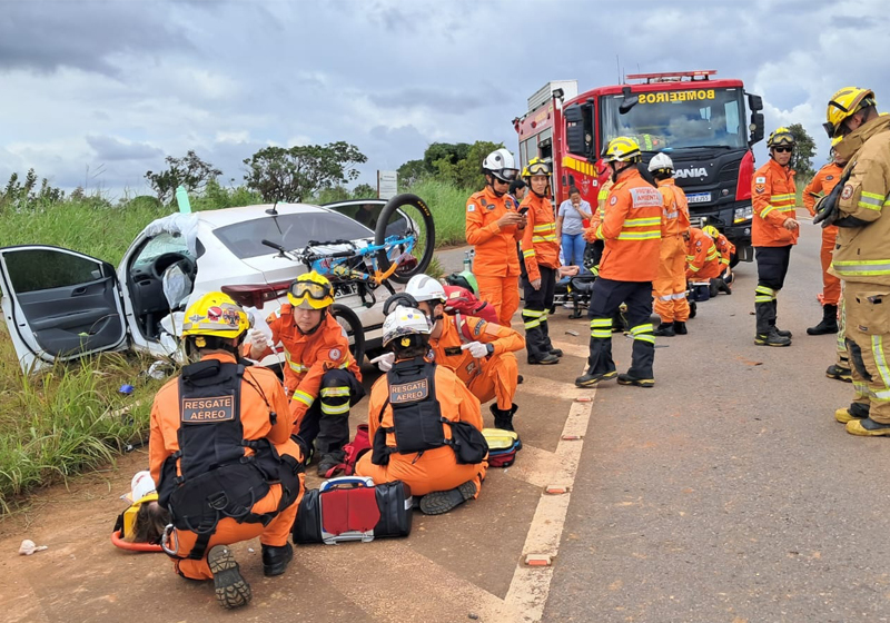 Uma colisão frontal entre dois veículos de passeio deixou quatro pessoas feridas na manhã desta quarta-feira (1º), na BR-020, em Planaltina, no Distrito Federal. O acidente mobilizou uma grande operação do Corpo de Bombeiros Militar do Distrito Federal, com o envio de seis viaturas e um helicóptero para o resgate das vítimas.