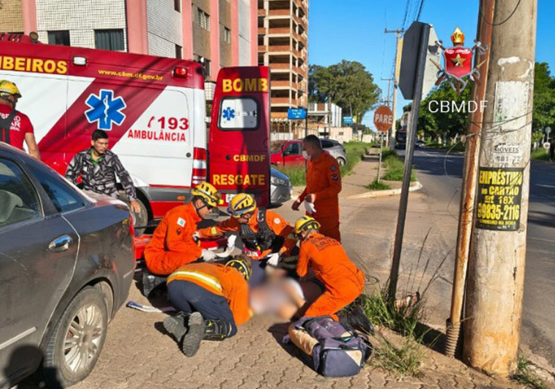 Um ciclista ficou ferido após ser atropelado por um carro na manhã desta terça-feira (23), na Ceilândia Norte, no Distrito Federal. O acidente mobilizou equipes do Corpo de Bombeiros Militar do Distrito Federal (CBMDF).