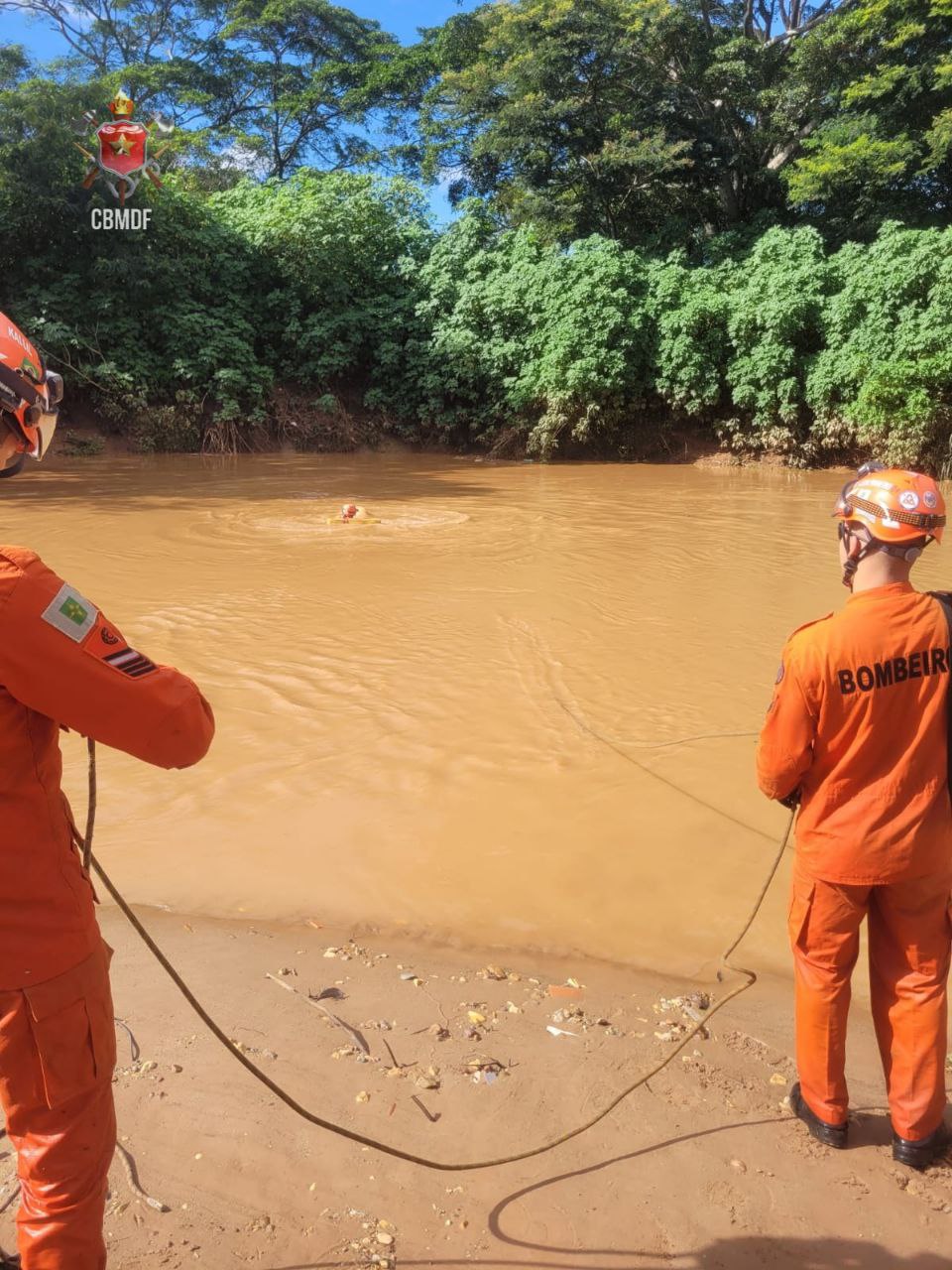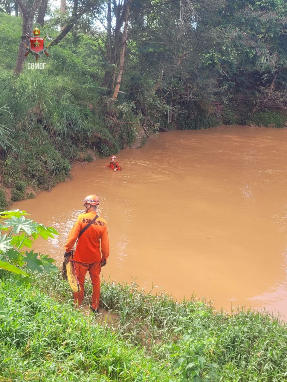 As equipes percorrem a margens e o leito do Rio Descoberto a procura do Senhor I.A.A.M, 27 anos que de acordo com informações teria desaparecido no Rio Descoberto na cidade de Santo Antônio do Descoberto-GO.