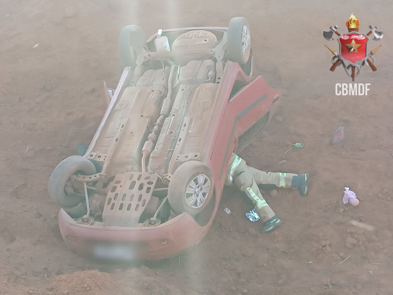 O Corpo de Bombeiros Militar do Distrito Federal (CBMDF) atendeu essa ocorrência às 17h07, e chegando ao local, encontrou um veículo de passeio, que após a condutora perder o controle da direção, saiu da via e capotou, parando em uma vala profunda, com cerca de três metros de profundidade e em seu interior haviam sete vítimas sendo cinco crianças.