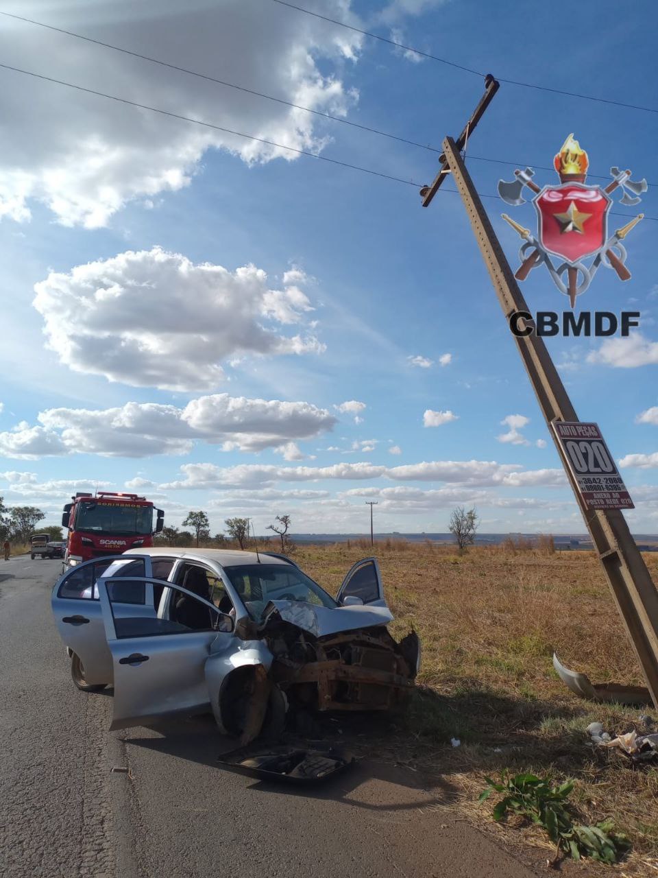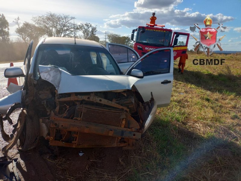 Nesta sexta-feira (28), as equipes do Corpo de Bombeiros Militar do Distrito Federal (CBMDF) chegaram ao local do acidente às 14h30, se deparam com um veículo Nissan/ MARCH cor prata, conduzido pela senhora, I.P.N, de 57 anos, que foi atendida, avaliada pelos bombeiros e transportada pelo SAMU ao HRPL, consciente, desorientada e estável. O senhor P.P.S, de 94 anos, que era passageiro do veículo (banco traseiro), foi atendido e apresentava fratura exposta no braço direito, corte na face, escoriações diversas, com edemas nas pernas e se queixava de dor na cervical, tórax e abdome. Foi transportado ao HRPL, consciente, desorientado e estável. Já a senhora M.A.N.S, de 89 anos, que ocupava o banco dianteiro, foi atendida pelos socorristas e entrou em PCR, os Socorristas empregaram o protocolo de reanimação cardiopulmonar por cerca de 40 minutos na cena da ocorrência, sendo que infelizmente o óbito foi declarado no local.