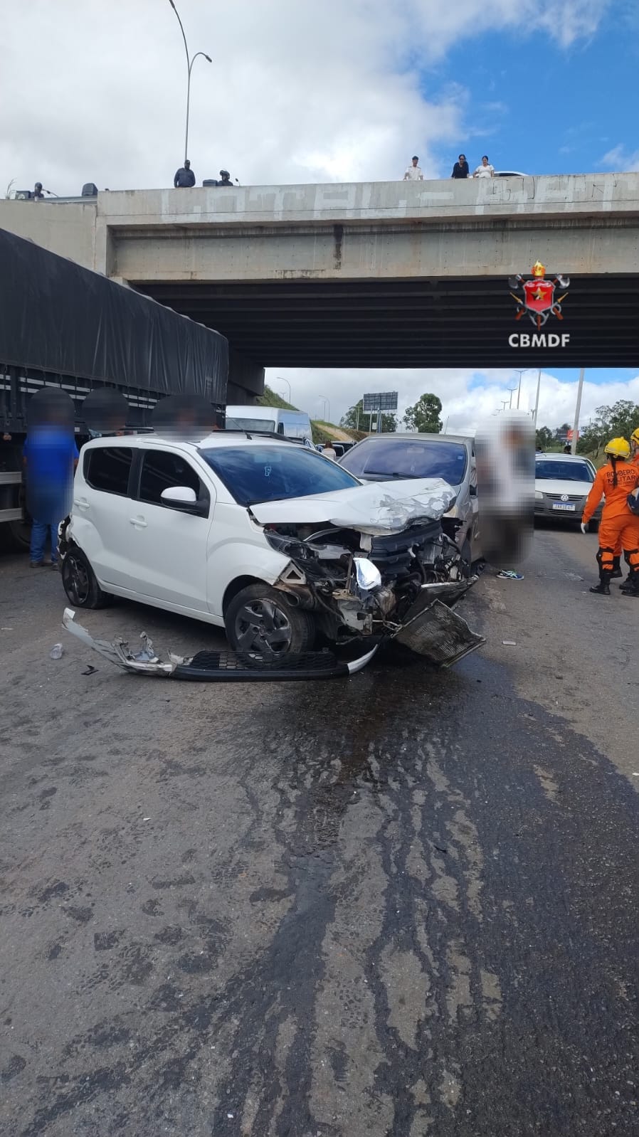 O Corpo de Bombeiros Militar do Distrito Federal (CBMDF) foi acionado para atender à ocorrência e, apesar do impacto da colisão, não houve vítimas. Todas as pessoas envolvidas passaram por avaliação no local e não apresentaram ferimentos, dispensando a necessidade de transporte hospitalar.