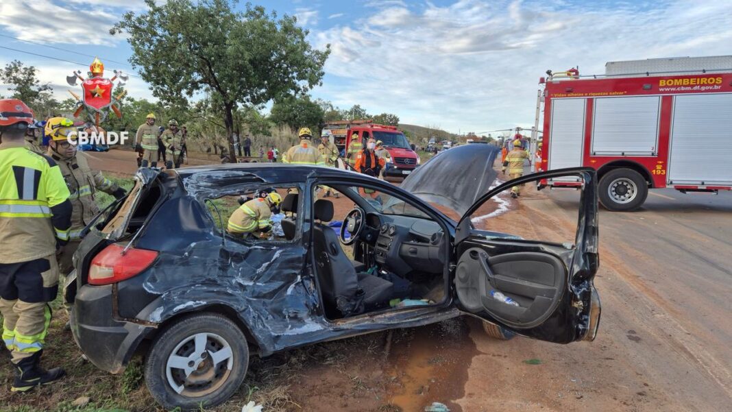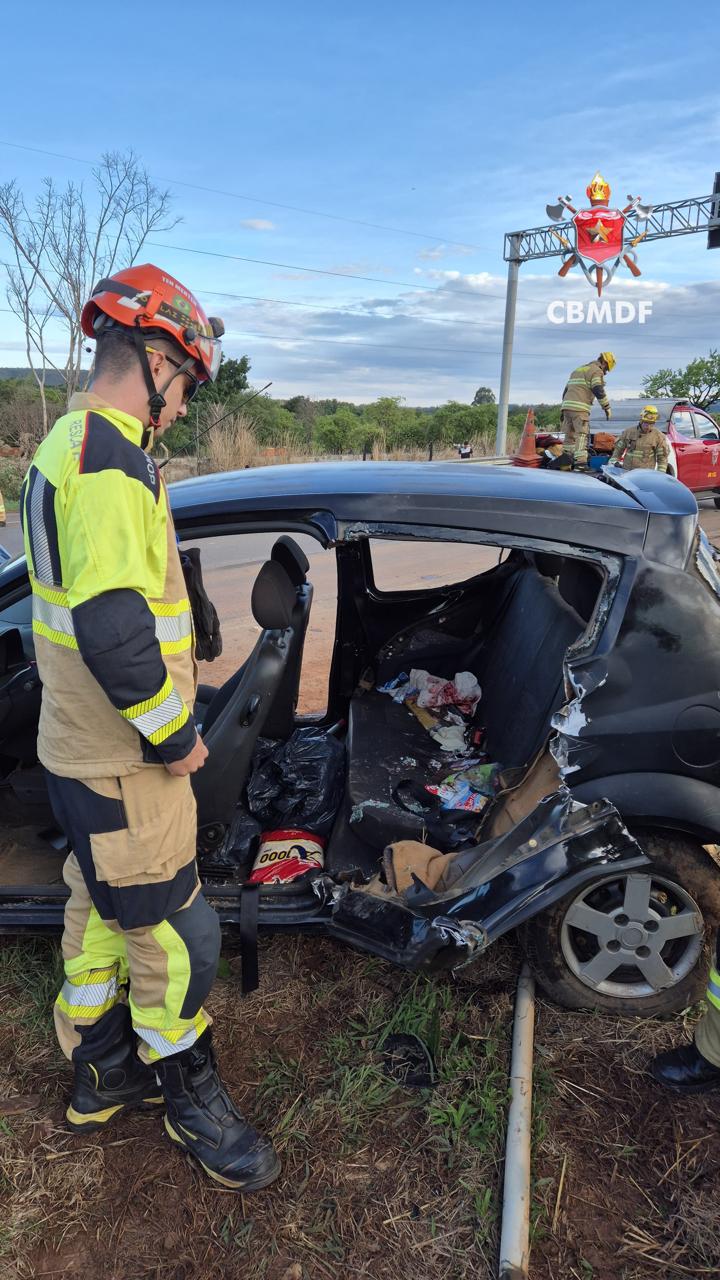 Ao chegarem ao local, os bombeiros encontraram os dois veículos colididos. Os condutores receberam atendimento no local e não precisaram ser transportados ao hospital. No Ford Ka, estavam duas crianças que apresentavam escoriações e quadro de desorientação. Elas receberam os primeiros socorros ainda na cena, foram estabilizadas e encaminhadas pelo helicóptero do CBMDF a um hospital de referência.