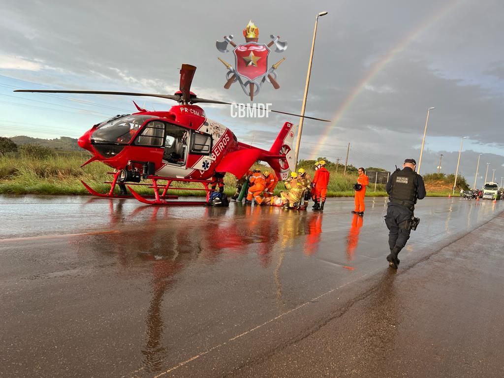 Após 40 minutos de procedimentos de reanimação cardiopulmonar com o suporte avançado de vida do serviço de Resgate Aéreo 03 do CBMDF, foi possível reaver os sinais vitais da vítima que, posteriormente, foi conduzida para o Hospital Regional de Brazlândia.