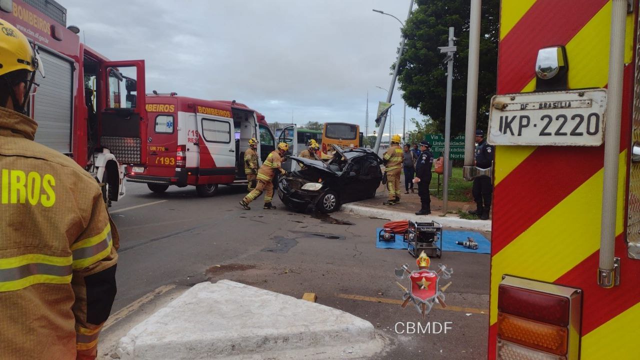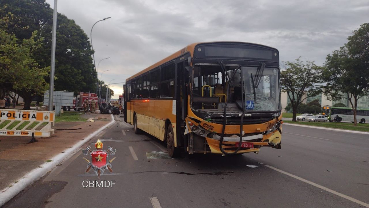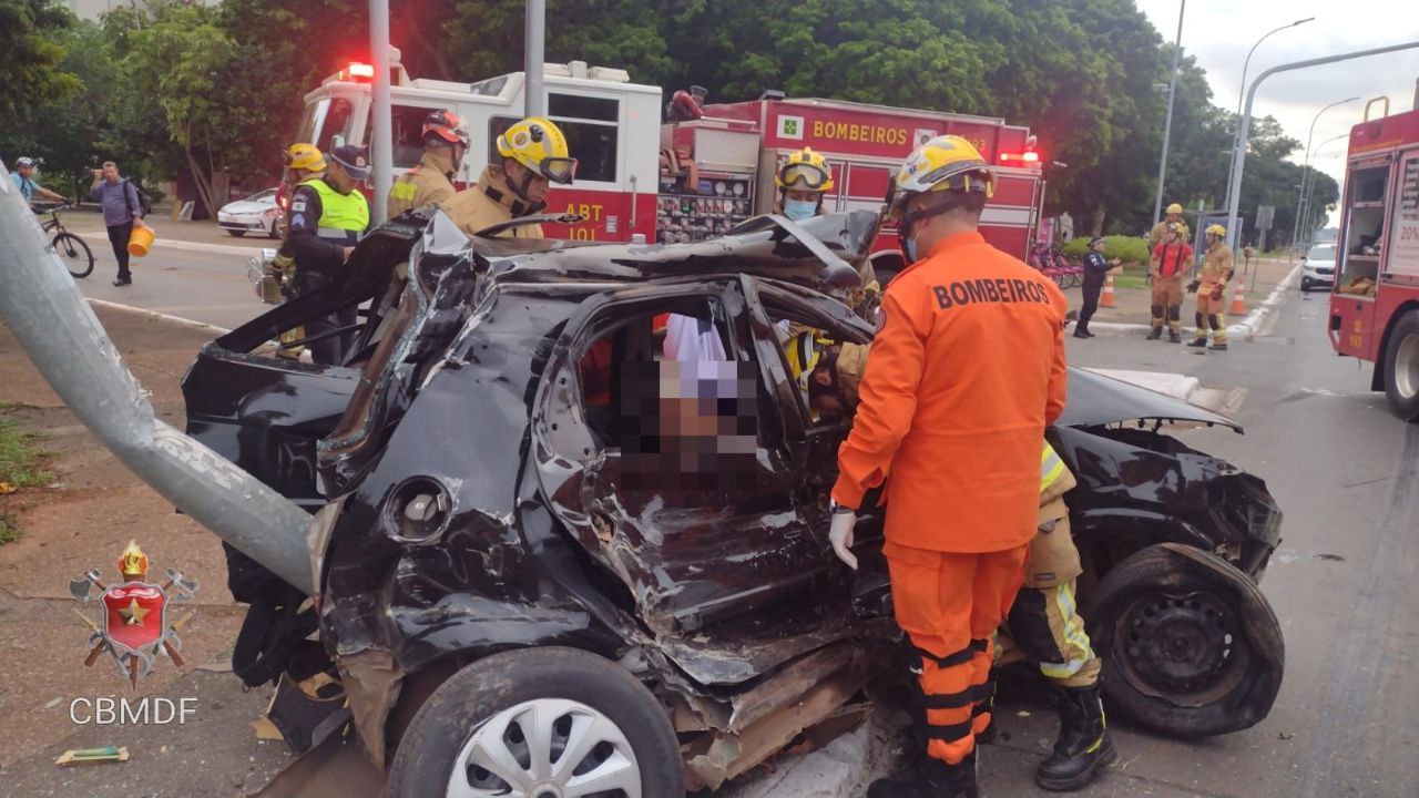 Colisão entre um carro de passeio, um ônibus e um poste, deixou duas pessoas mortas. O acidente aconteceu por volta das 5h40 desta quarta-feira (14) na Esplanada dos Ministérios, sentido Rodoviária do Plano Piloto, próximo ao Ministério da Economia.