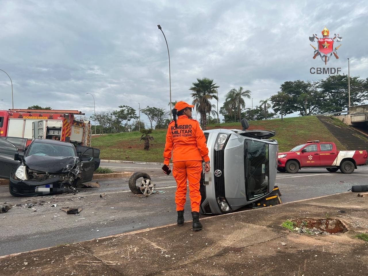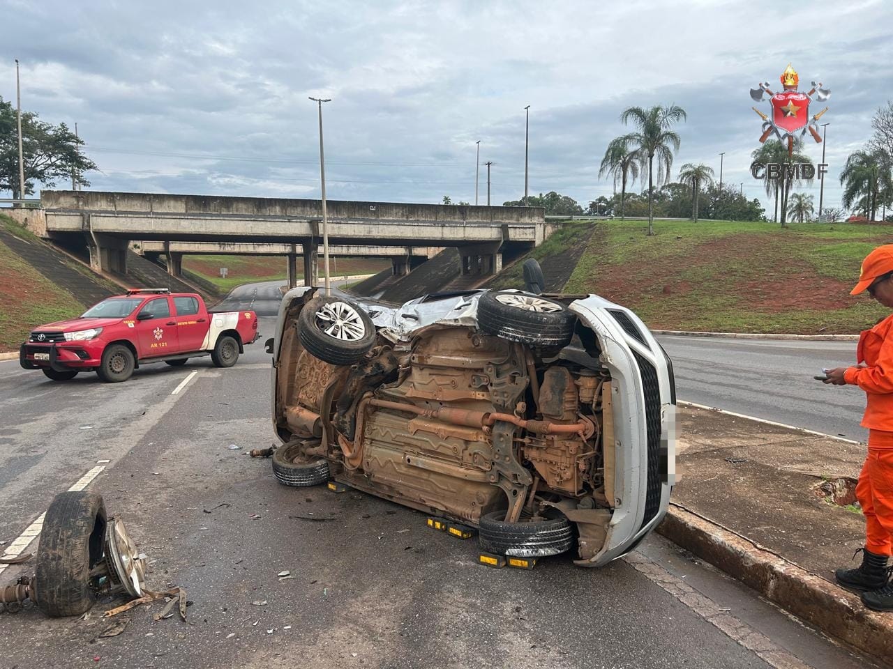 O acidente ocorreu nesta manhã de sábado (16), na via de acesso ao SCES Trecho 3, sentido Lago Sul.
