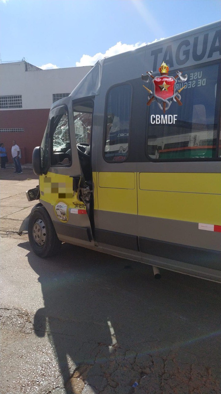 Na van escolar, além do condutor, havia mais quatro adolescentes entre 12/13 anos de idade. O motorista e o adolescente, E. C. S., 13 anos, ficaram presos nos assentos dianteiros do automóvel e foi preciso usar as ferramentas de desencarceramento para retirá-los do interior da van. O adolescente estava consciente, orientado e estável, mas reclamava de dores no quadril. Após regulação médica, foi encaminhado para o Hospital Santa Marta. O motorista estava, consciente, orientado e estável, sem necessidade de transporte para unidade hospitalar.