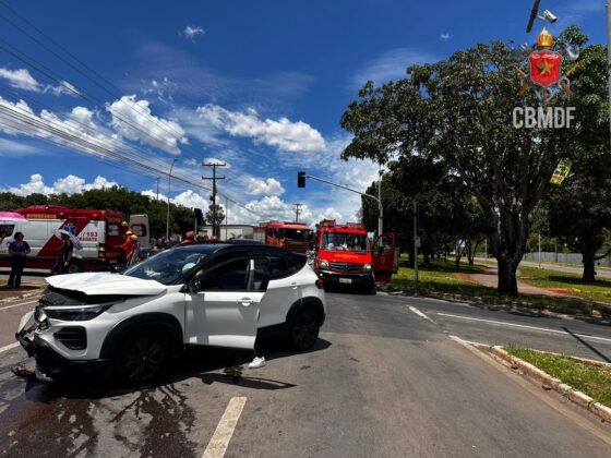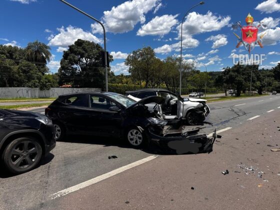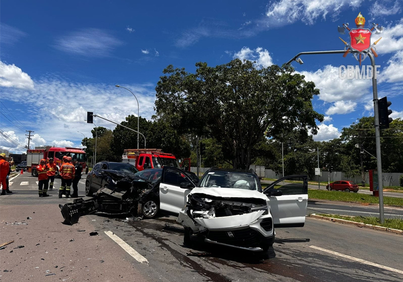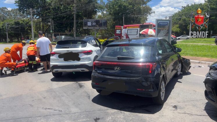 Um acidente envolvendo três veículos mobilizou equipes do Corpo de Bombeiros Militar do Distrito Federal (CBMDF) no início da tarde desta sexta-feira (26), no Lago Sul, e deixou cinco pessoas feridas.