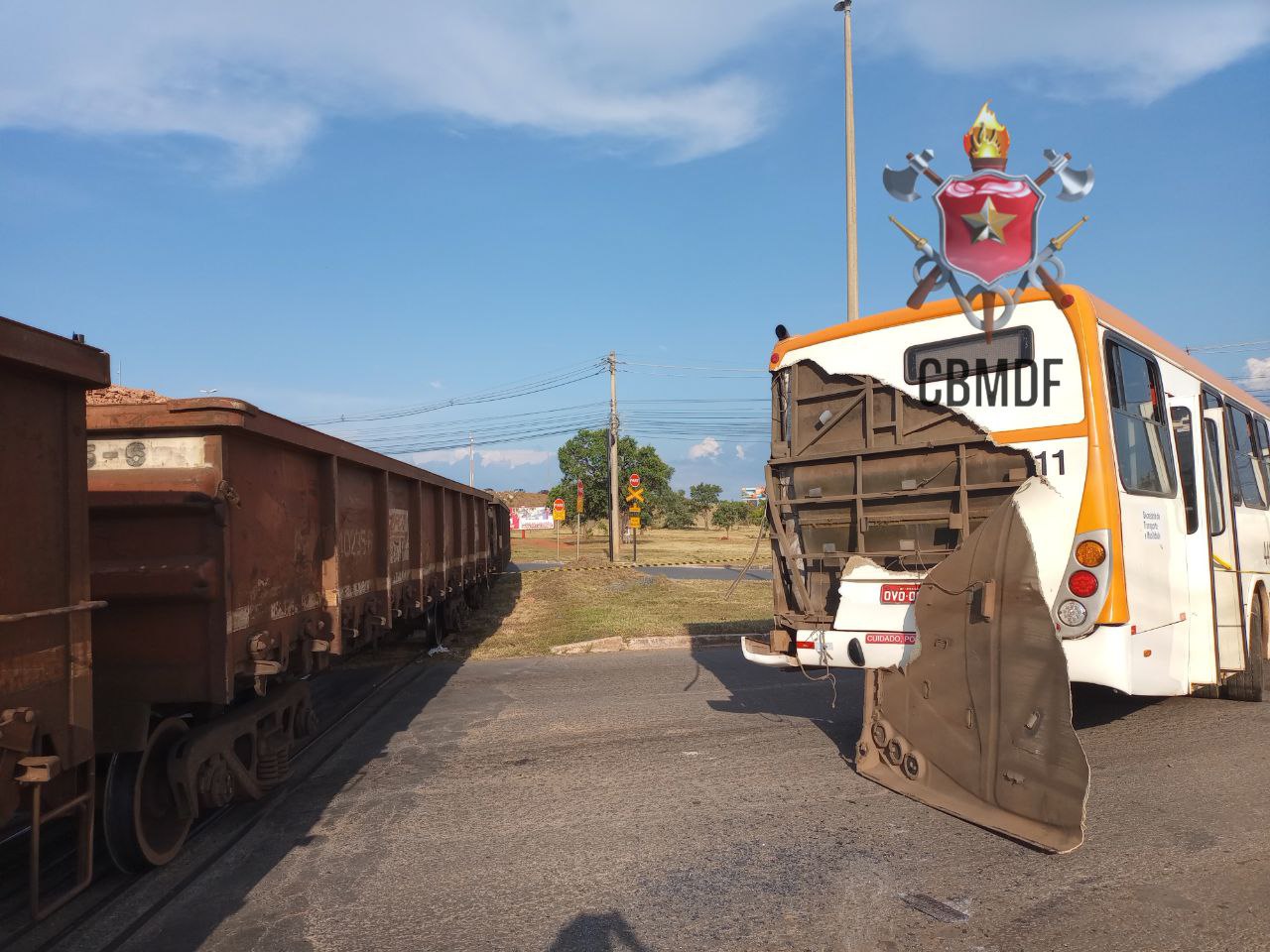 Um trem de carga se chocou com um ônibus que cruzava uma linha férrea no Distrito Federal, na tarde desta sexta-feira (17). Uma pessoa, passageira do ônibus, morreu no acidente, ocorrido no Setor de Indústria e Abastecimento (SIA). Um motorista que passava de carro pelo local filmou o acidente. No vídeo, é possível ouvir o trem apitando para o ônibus, que passava em baixa velocidade pela linha do trem. O motorista do ônibus chega a acelerar o veículo, mas não a tempo de evitar a colisão.
