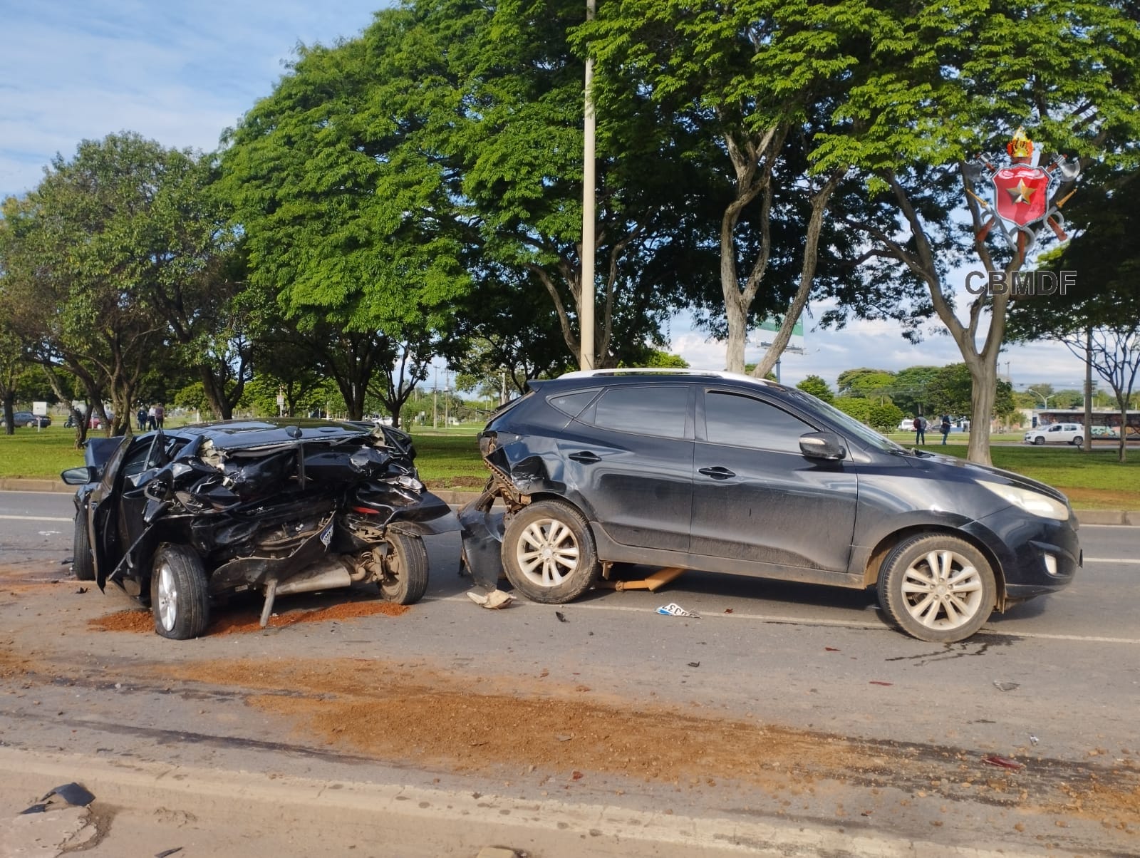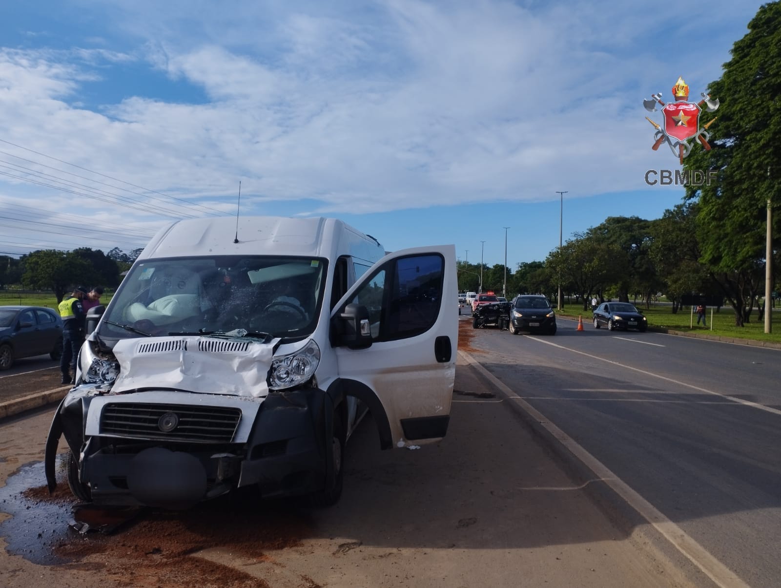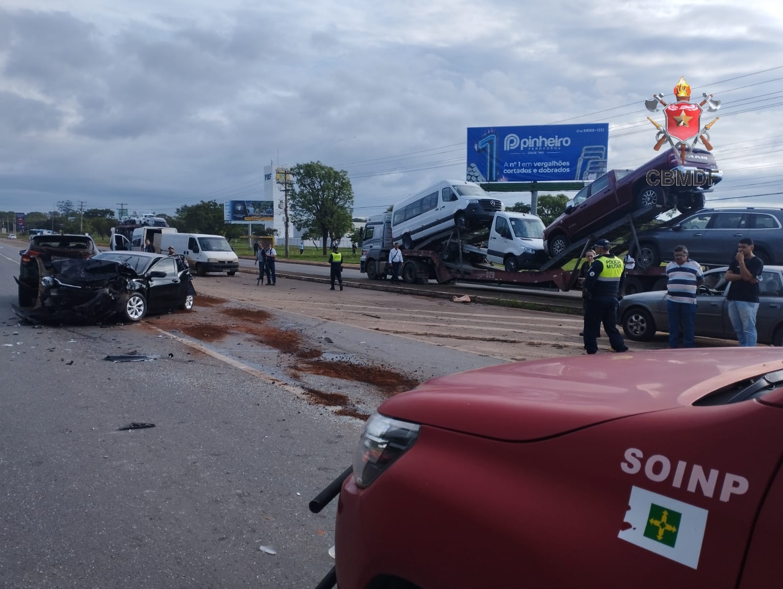 O acidente envolveu três veículos: um GM Ônix preto, um Hyundai Ix 35 preto e uma van Fiat Ducato branca. Apesar do impacto significativo, apenas o condutor da van, de 45 anos, precisou de atendimento médico. Ele foi socorrido no local, apresentou um corte na testa e suspeitas de fratura no nariz, e foi transportado consciente e orientado para o Hospital de Base.