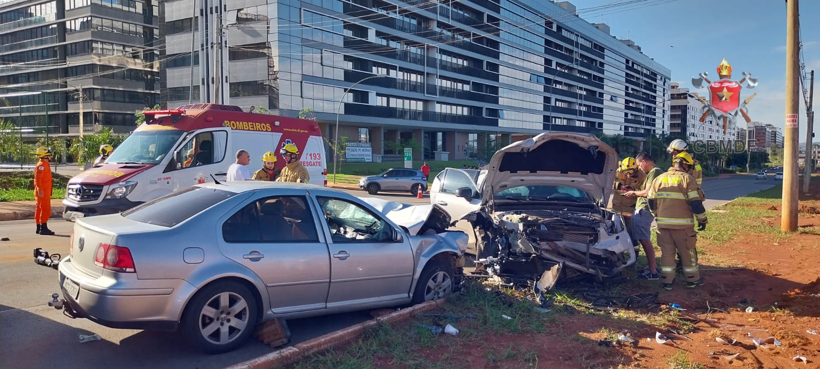 Na tarde deste domingo (27), um VW Bora e um Volvo XC40 colidiram frontalmente na SQNW103, avenida do bloco E, Setor Noroeste.