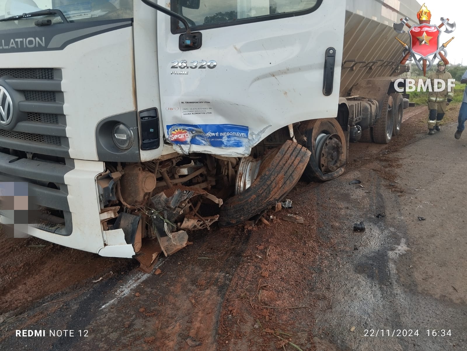 Na tarde de ontem (22), o Corpo de Bombeiros Militar do Distrito Federal (CBMDF) atendeu uma colisão frontal envolvendo um carro e um caminhão na Estrada Parque Contorno (DF-001), próximo ao viaduto de Santa Maria. A ocorrência foi registrada às 16h12.