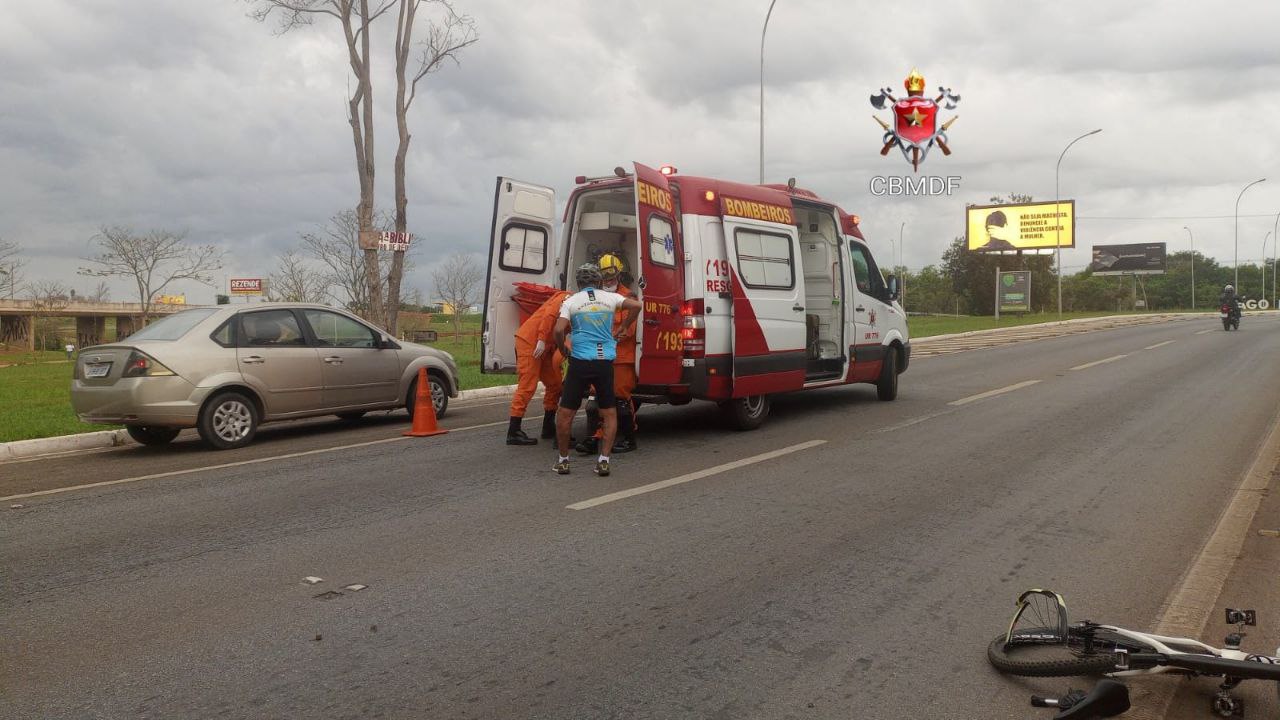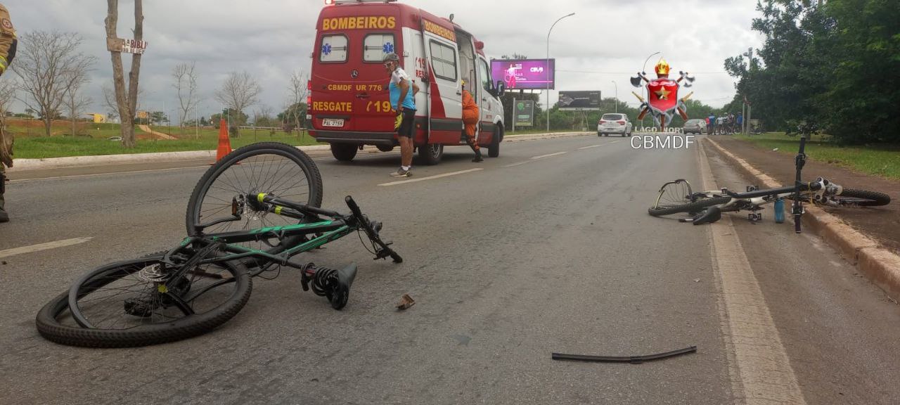 Dois ciclistas foram atropelados e uma das vítimas fica gravemente ferida no Lago Norte
