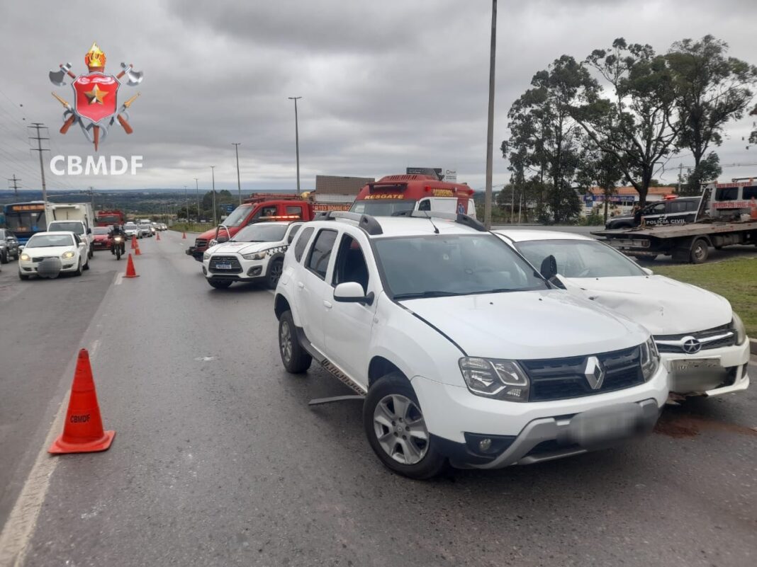 O Corpo de Bombeiros Militar do Distrito Federal (CBMDF) atendeu, às 14h18 desta terça-feira (21), uma colisão envolvendo dois carros de passeio e uma motocicleta na EPNB, região do Núcleo Bandeirante, no Distrito Federal. A ocorrência mobilizou duas viaturas de socorro.