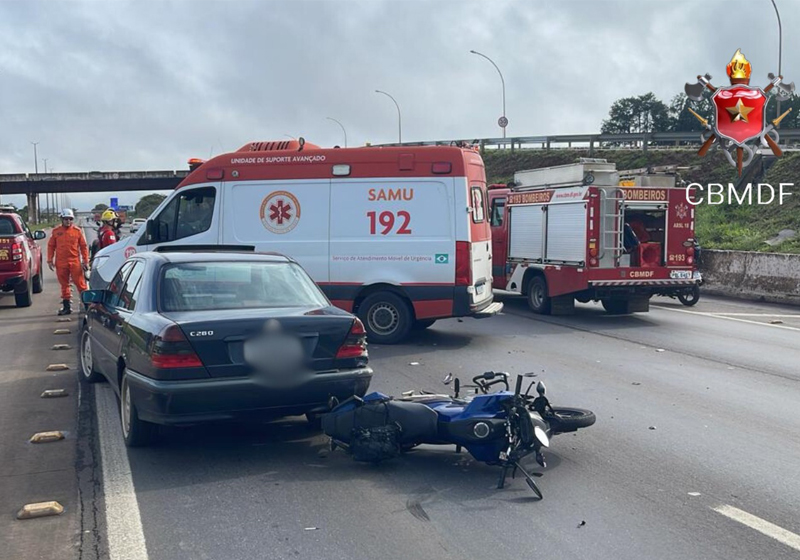 O Corpo de Bombeiros Militar do Distrito Federal (CBMDF) foi acionado às 7h36, com o empenho de três viaturas de socorro, para atender à ocorrência registrada na altura do segundo viaduto após o Catetinho, no sentido Plano Piloto.