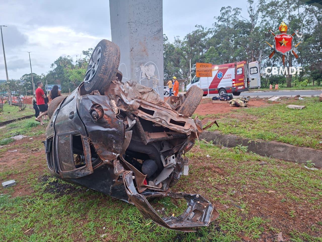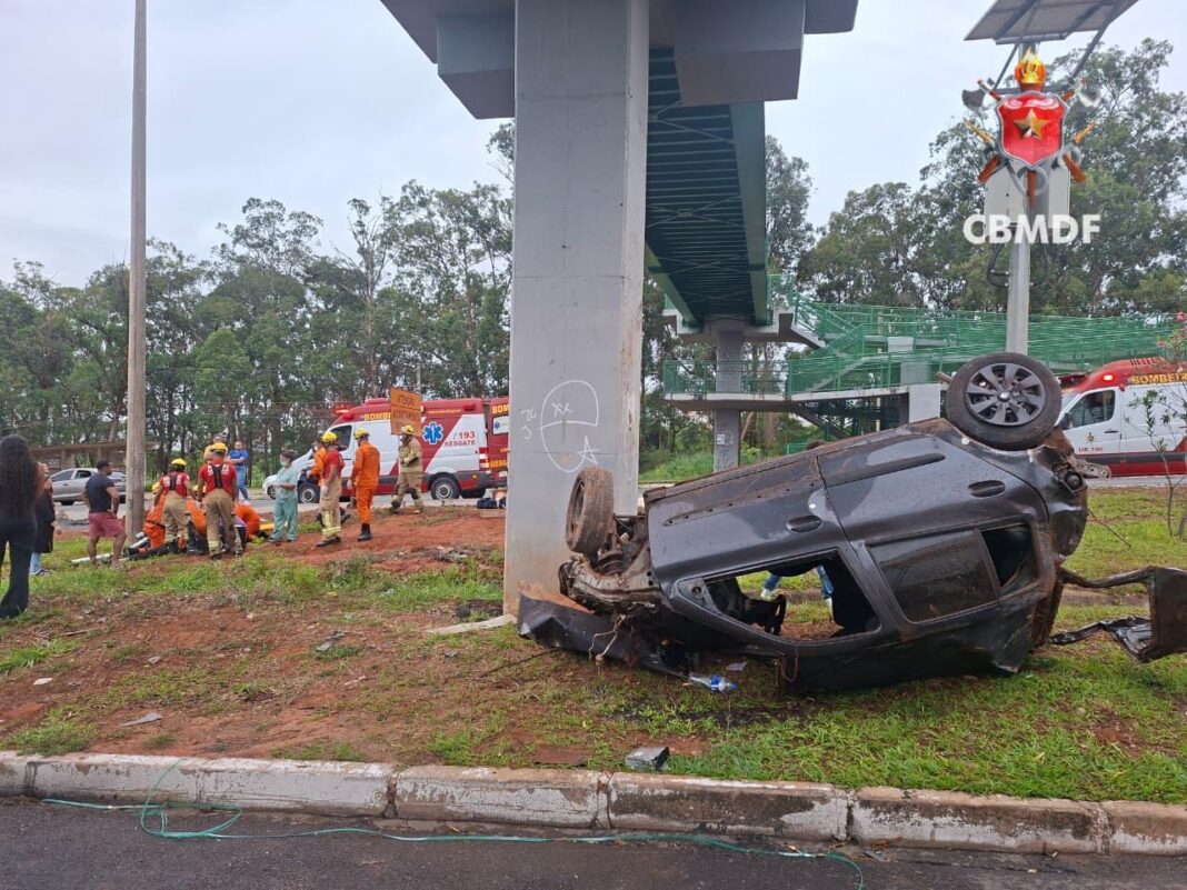 Na manhã deste domingo (23), o Corpo de Bombeiros Militar do Distrito Federal (CBMDF) atendeu, às 5h45, uma ocorrência de capotamento na Estrada Parque Taguatinga (EPTG), nas proximidades da Residência Oficial do Governador, sentido Plano Piloto.