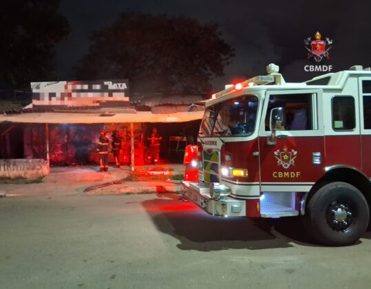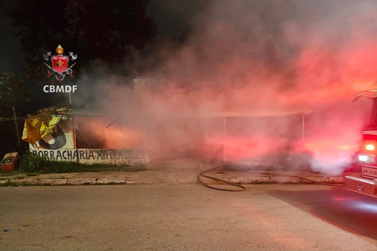 O Corpo de Bombeiros Militar do Distrito Federal (CBMDF) combateu, na noite deste domingo (28), um incêndio em um quiosque localizado na AE 12, no Setor de Oficinas Sul, em Taguatinga.
