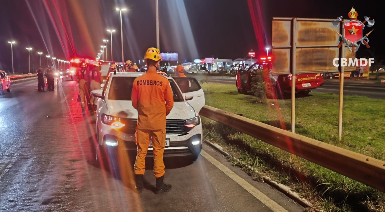 O Corpo de Bombeiros Militar do Distrito Federal (CBMDF) foi acionado às 19h48 e empregou duas viaturas para o atendimento. Ao chegarem ao local, as equipes encontraram a vítima, ainda sem identificação, caída no solo após ser atingida por um veículo VW T-Cross, de cor branca.