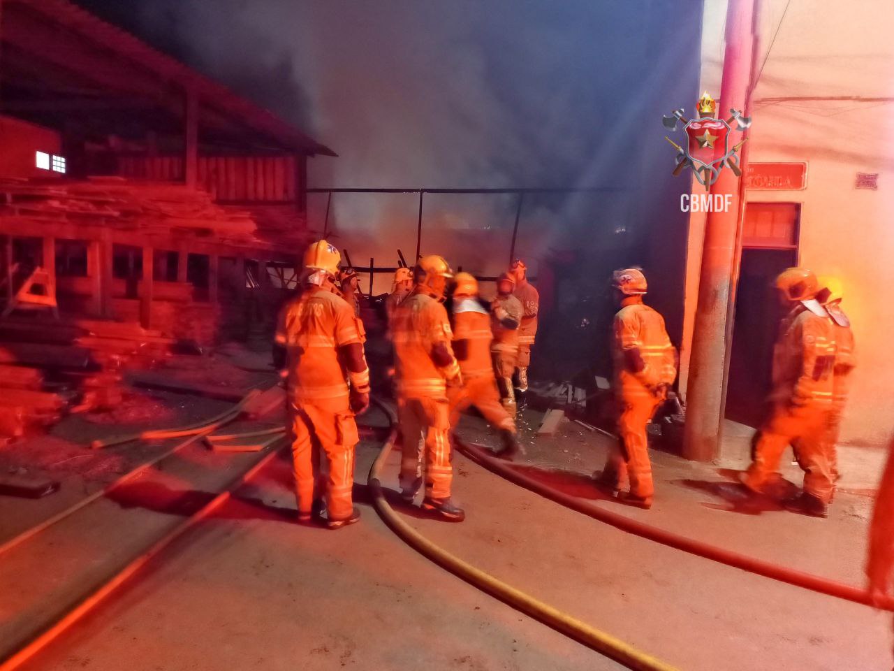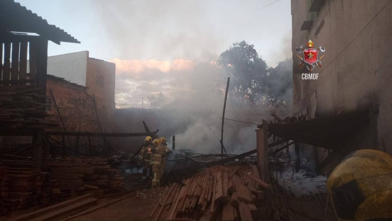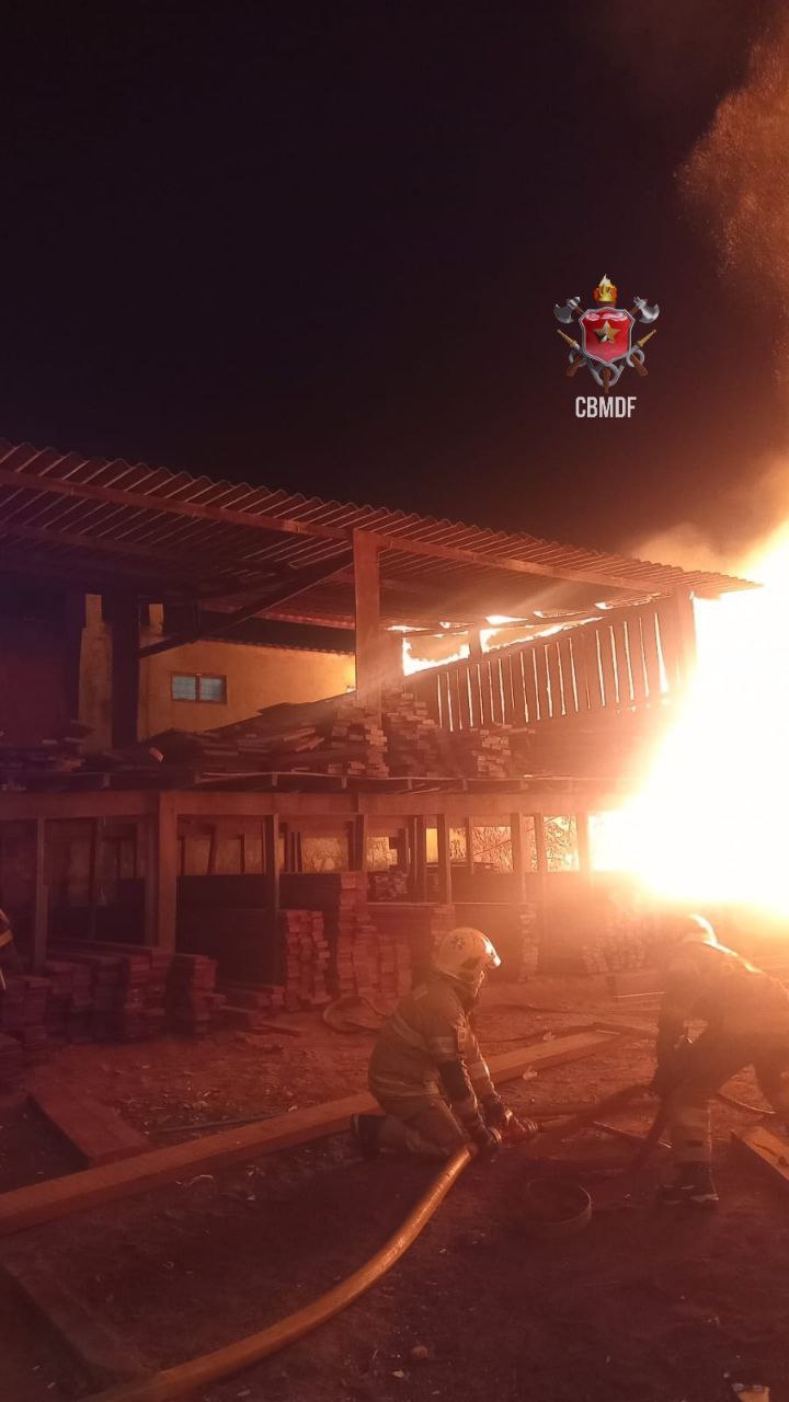 O Corpo de Bombeiros Militar do Distrito Federal (CBMDF) atendeu essa ocorrência às 04h35, em um deposito de madeiras com uma área de aproximadamente 100 m², cercada por edificações.