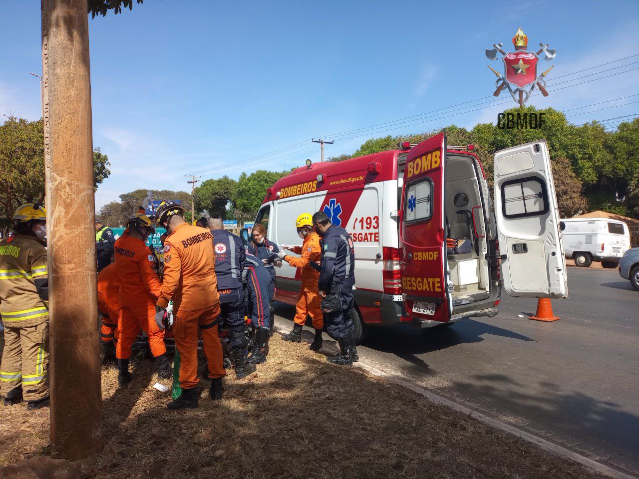 O acidente no Pistão Norte às 09h40 em frente ao atacadista Dia a Dia em Taguatinga-DF