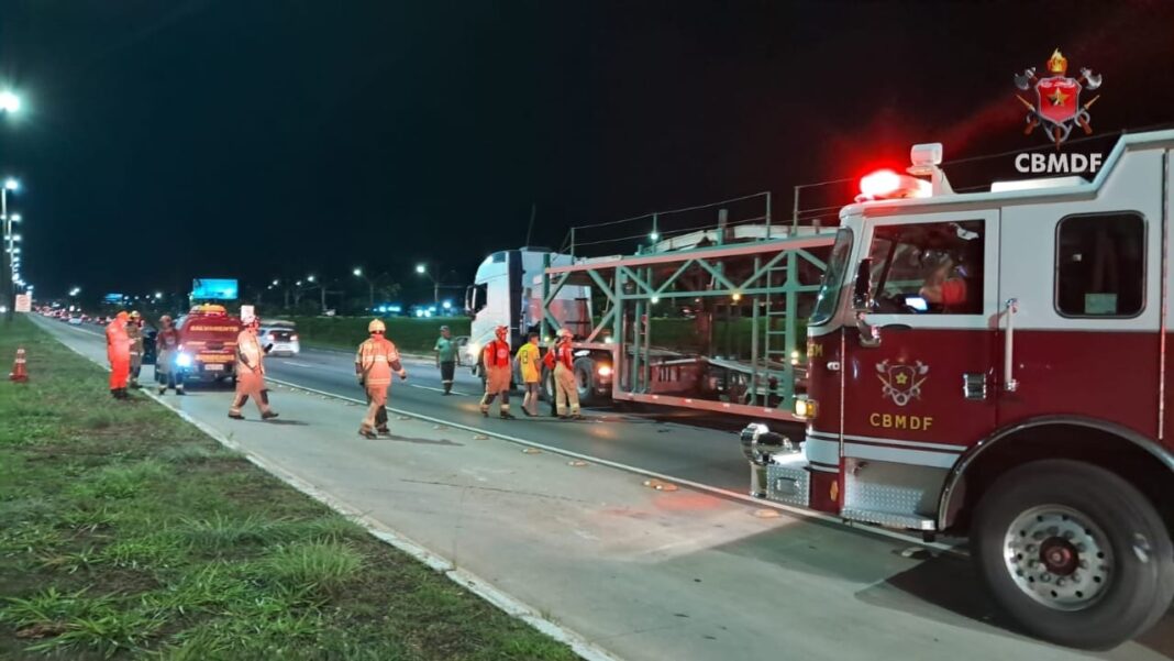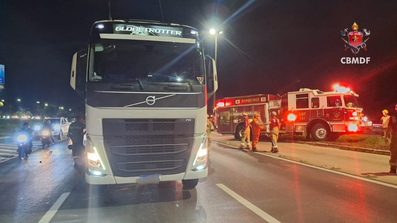 Na noite desta quarta-feira (26), o Corpo de Bombeiros Militar do Distrito Federal atendeu às 19h36, uma ocorrência de colisão entre uma carreta e uma motocicleta na SMPW Quadra 08, nas proximidades do viaduto do Catetinho, sentido Gama.