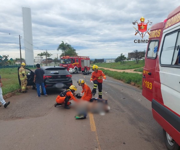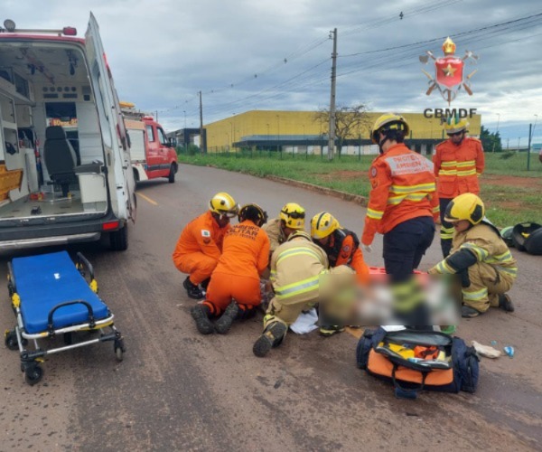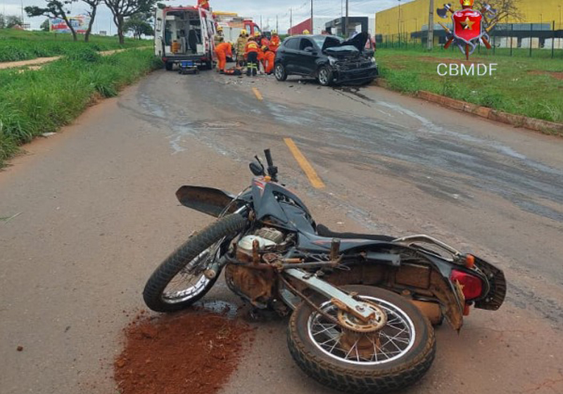 O Corpo de Bombeiros Militar do Distrito Federal (CBMDF) atendeu a uma ocorrência de colisão entre um carro e uma motocicleta na manhã desta terça-feira (13), por volta das 7h59, na marginal da BR-040, na altura do Polo Industrial JK, Trecho 01, em Santa Maria, no sentido Brasília.