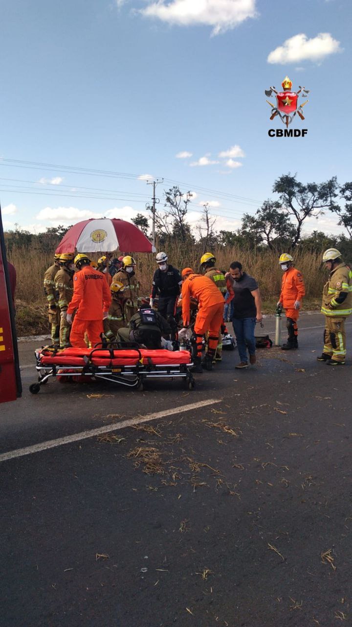 No começo dessa tarde o Corpo de Bombeiros Militar do Distrito Federal (CBMDF) foi acionado para um acidente de trânsito na BR 020. Chegando ao local os militares constataram que se tratava de uma colisão envolvendo um caminhão e uma motocicleta. O caminhão de modelo Scania, cor branca, era conduzido pelo senhor R.V.A., 58 anos, foi avaliado pelas equipes e não apresentava ferimentos. A motocicleta Honda CG 150 de cor vermelha, era conduzida pelo senhor R.S.P., 28 anos, que sofreu trauma na região torácica e acabou por entrar em parada cardiorrespiratória. os socorristas prontamente iniciaram as manobras para reanimação cardiopulmonar, mas infelizmente o mesmo não resistiu às lesões e teve seu óbito declarado no local.