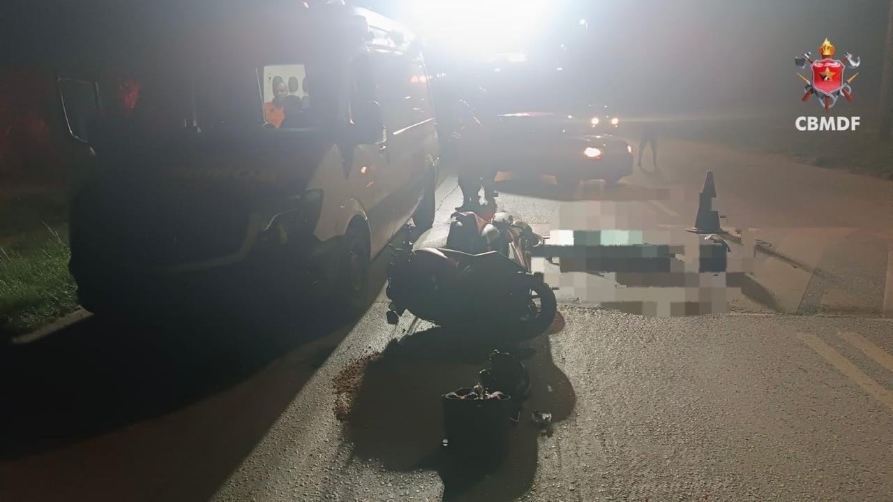 Uma jovem de 21 anos morreu na madrugada deste domingo (30) após a motocicleta em que estava colidir com um carro no balão de interseção da DF-280 com a DF-190, sentido Santo Antônio do Descoberto. O Corpo de Bombeiros Militar do Distrito Federal (CBMDF) foi acionado por volta de 1h46 e enviou duas viaturas para atendimento.