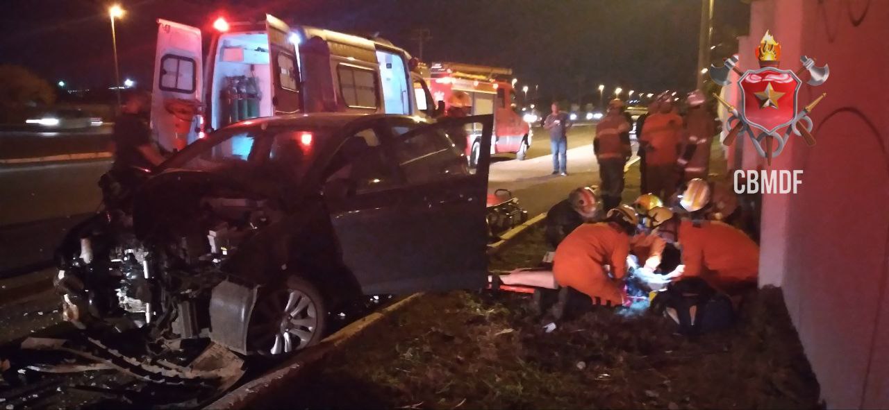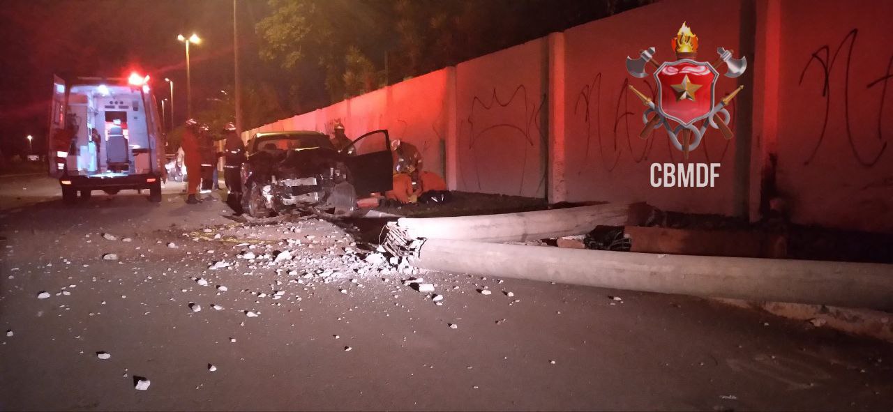 O Corpo de Bombeiros Militar do Distrito Federal (CBMDF) atendeu a uma ocorrência de trânsito nesta segunda-feira (15/05) às 19h52, chegando ao local a equipe de socorro, verificou que se tratava de um veículo que havia saído da pista e colidido com um poste de iluminação pública. A condutora, a Senhora L.M.P.O.C, de 24 anos, foi atendida pelos socorristas e transportada para o IHBB, consciente e desorientada, com dores na região do tórax e escoriações nos dedos da mão esquerda.