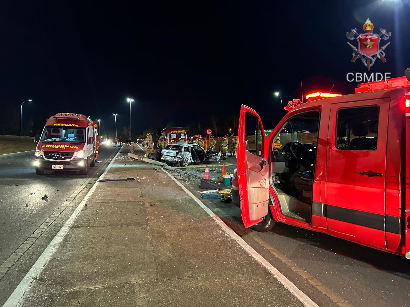 O acidente ocorreu na noite desta quinta-feira (10), próximo ao viaduto que da acesso a Ponte JK, entre às L4 Norte e Sul.
