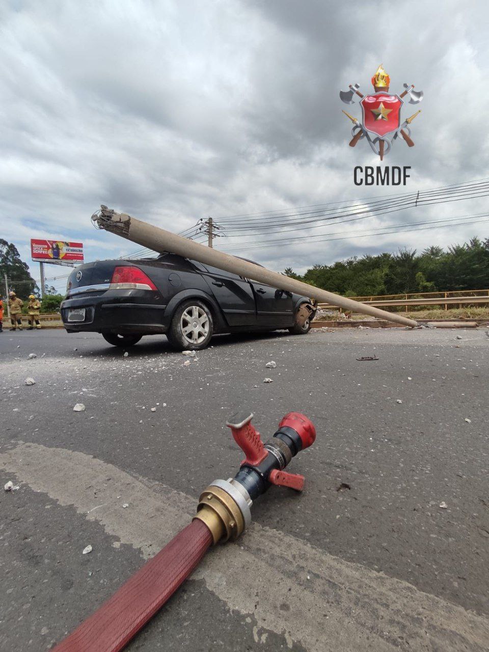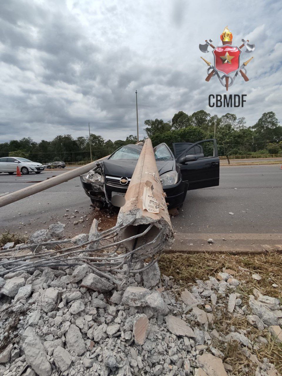 Nesta manhã de domingo (19), um vectra de cor preta, colidiu contra um poste de iluminação na EPTG, após o SIA, próximo a entrada do Guará.