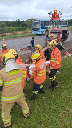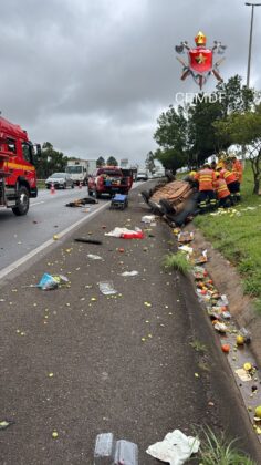 Durante a ocorrência, os bombeiros realizaram a sinalização da pista, controlaram o tráfego e interditaram parte da via para evitar novos acidentes.