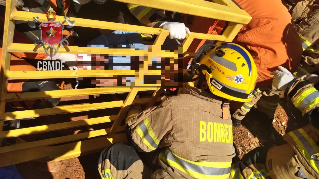 A vítima não saiu do habitáculo (gaiola de proteção) até a chegada do socorro. Os bombeiros constataram que a vítima estava consciente, desorientada e potencialmente instável, sendo transportado pelo resgate aéreo do CBMDF ao Hospital de Base, apresentando suspeita de múltiplas fraturas, sendo uma fratura exposta na perna esquerda, além de corte profundo na região da cabeça com suspeita de traumatismo craniano (TCE) e luxação no ombro.