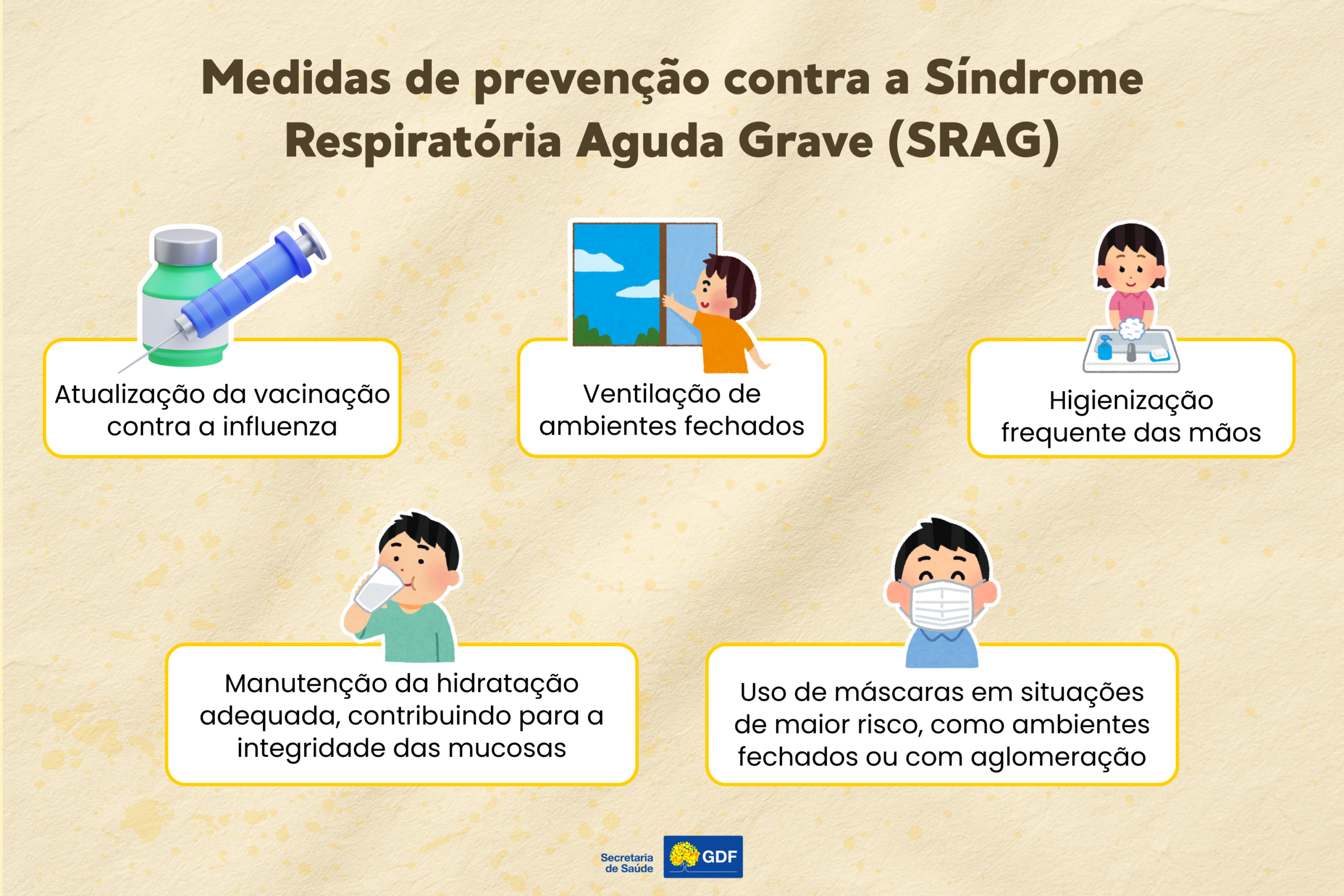 Para coibir surtos da SRAG, Malta recomenda medidas simples de prevenção, como lavar frequentemente as mãos, manter a hidratação adequada — o que contribui para a integridade das mucosas —, evitar espaços com pouca circulação de ar e utilizar máscaras em situações de maior risco, como ambientes fechados ou com aglomeração. Manter o cartão vacinal sempre atualizado continua sendo a medida mais importante para evitar o agravamento das síndromes respiratórias.