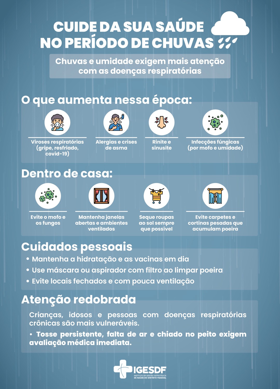 Com a chegada das chuvas intensas no Distrito Federal, acende um alerta para os cuidados com a saúde nesta época do ano. A combinação entre calor e umidade cria o cenário ideal para o aumento de doenças respiratórias, viroses e alergias, exigindo atenção redobrada da população.