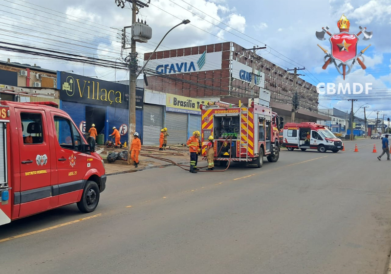 A ocorrência foi atendida por volta das 12h22, na QI 08, com o envio de quatro viaturas. Ao chegarem ao endereço, os bombeiros identificaram fumaça saindo pela fachada do estabelecimento, que estava fechado no momento do incidente.