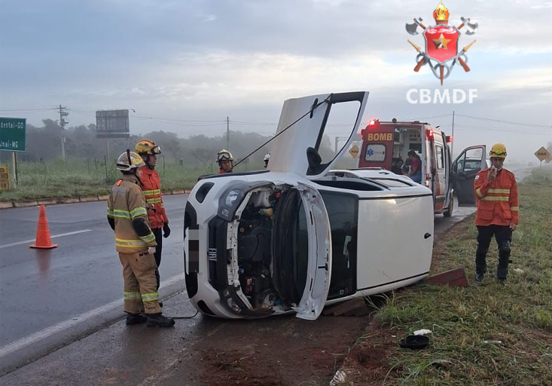Motorista fica ferida após carro tombar próximo à Papuda