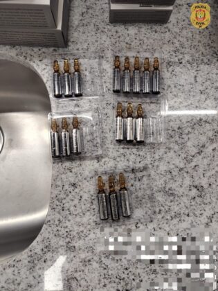 Durante a fiscalização, foram encontradas substâncias como tizarpatida, semaglutida e testosterona, todas sem comprovação de origem e armazenadas de forma inadequada. O responsável pelo local não compareceu para prestar esclarecimentos nem apresentou prescrições médicas que justificassem o uso dos medicamentos em pacientes.