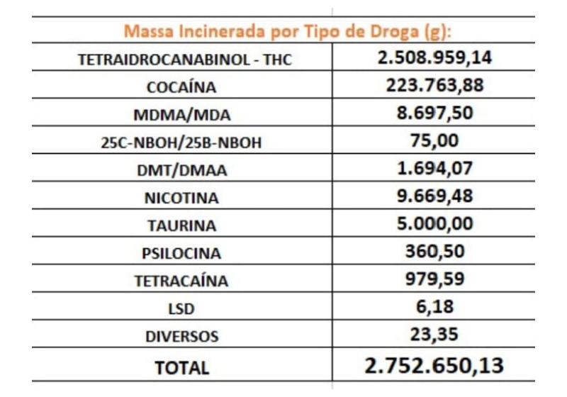 Esta foi a segunda incineração realizada pela PCDF em 2025 — a primeira ocorreu em março, quando 3,6 toneladas de drogas foram destruídas.