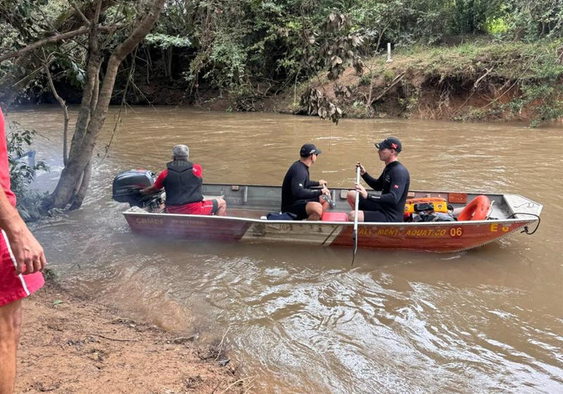 Mesmo após a indicação do local onde o corpo teria sido lançado, equipes realizaram diligências na região. As buscas contaram com apoio do Corpo de Bombeiros Militar do Distrito Federal (CBMDF), que realizou varreduras nas margens e no leito do rio.