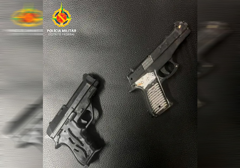 Durante a abordagem, foram apreendidos dois simulacros de arma de fogo utilizados para intimidar as vítimas, além de R$ 420,00, que foi restituído à responsável pela farmácia.