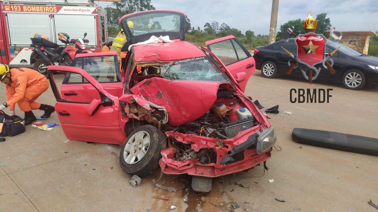 Uma pessoa fica ferida após carro colidir na traseira de ônibus em Taguatinga