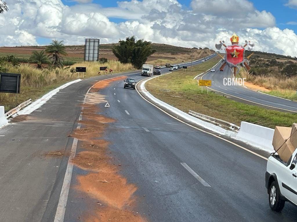 O fato ocorreu na descida da BR 020, antes da ponte do Rio Pipiripau e logo após essa, em uma grande extensão de óleo derramada na faixa direita dessa via.