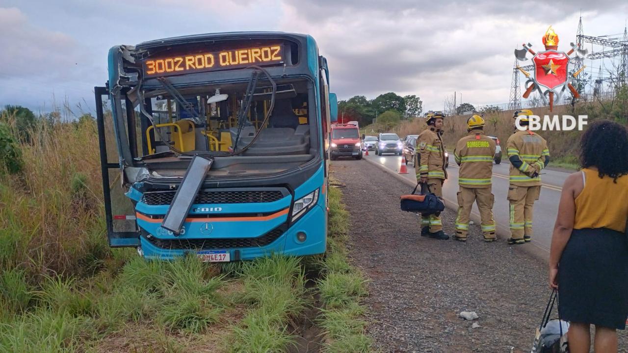 O Corpo de Bombeiros Militar do Distrito Federal (CBMDF) foi acionado às 17h30 deste domingo (19) para atender a uma ocorrência de colisão envolvendo um ônibus e um poste de iluminação pública, na BR-060, sentido Goiânia.